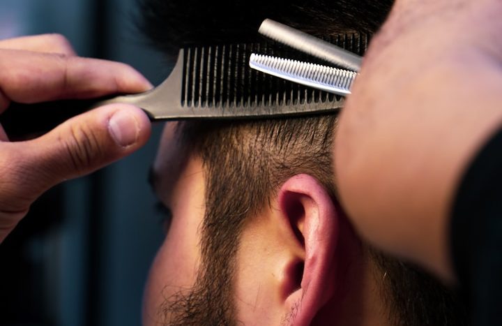 Precision fade (clippers) on the sides with tailored scissor work on top
